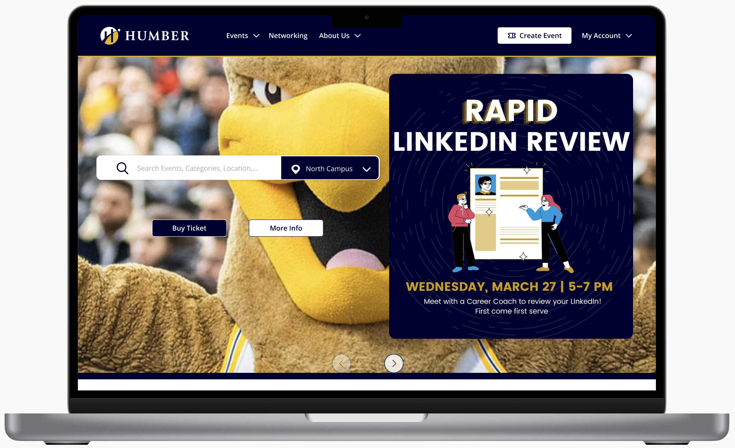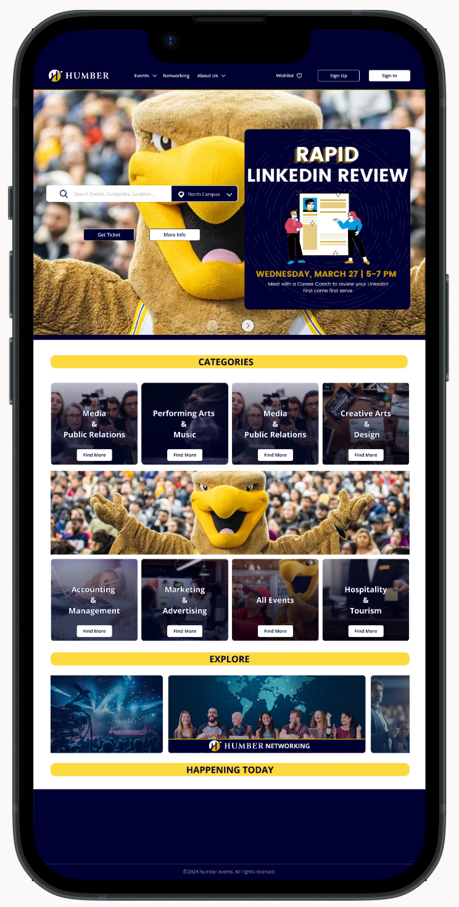 As a college student, I’ve noticed many of my peers were unaware of the events happening across different Humber campuses since Humber has always relied on Eventbrite for their events but sought something more tailored to their unique needs.