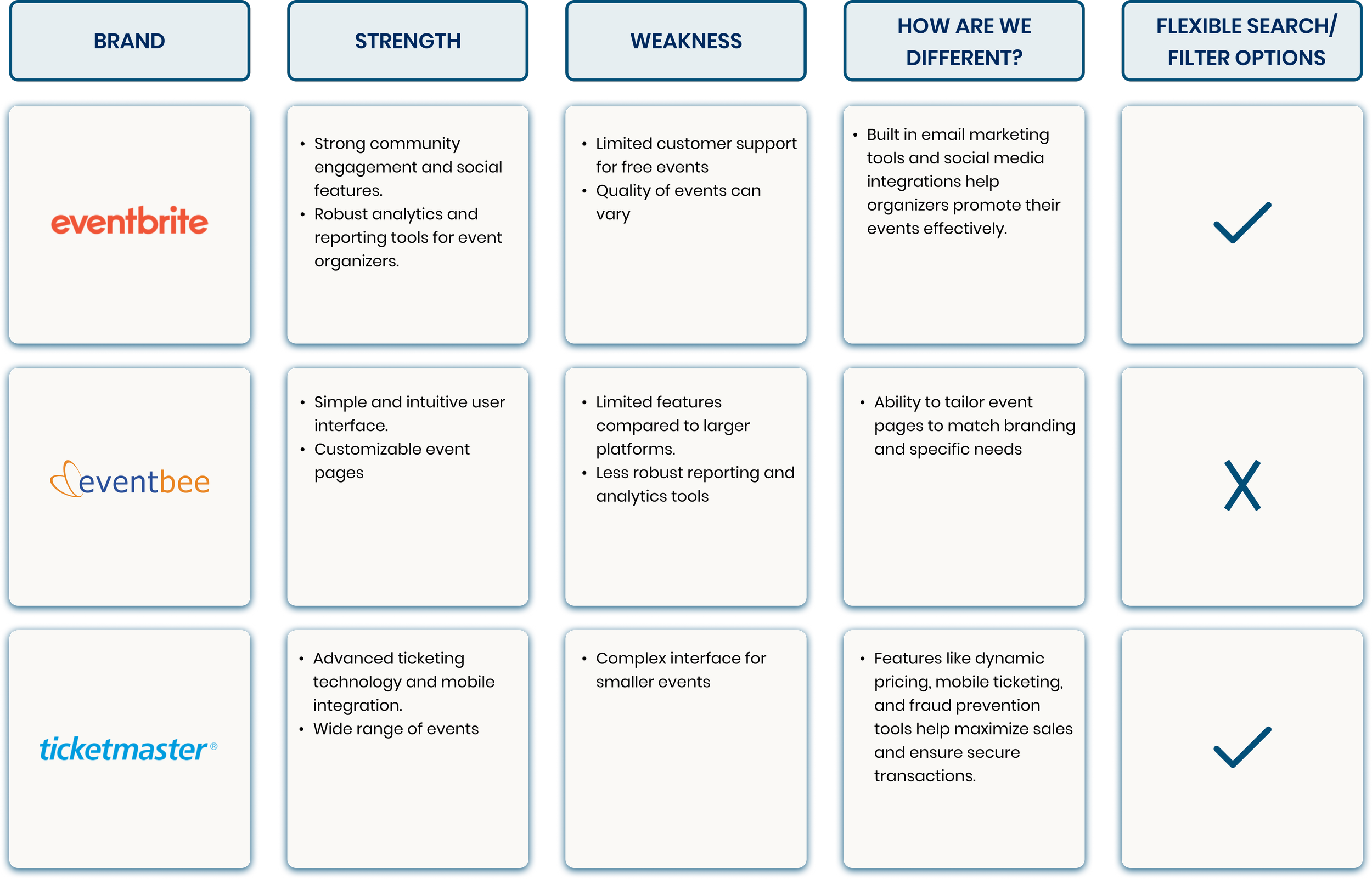 Upon analyzing all the three competitors, I found that almost none of them had refined filter options to streamline the process of finding events of interest. This lack of advanced filtering features significantly increases the time users need to invest is finding relevant events.