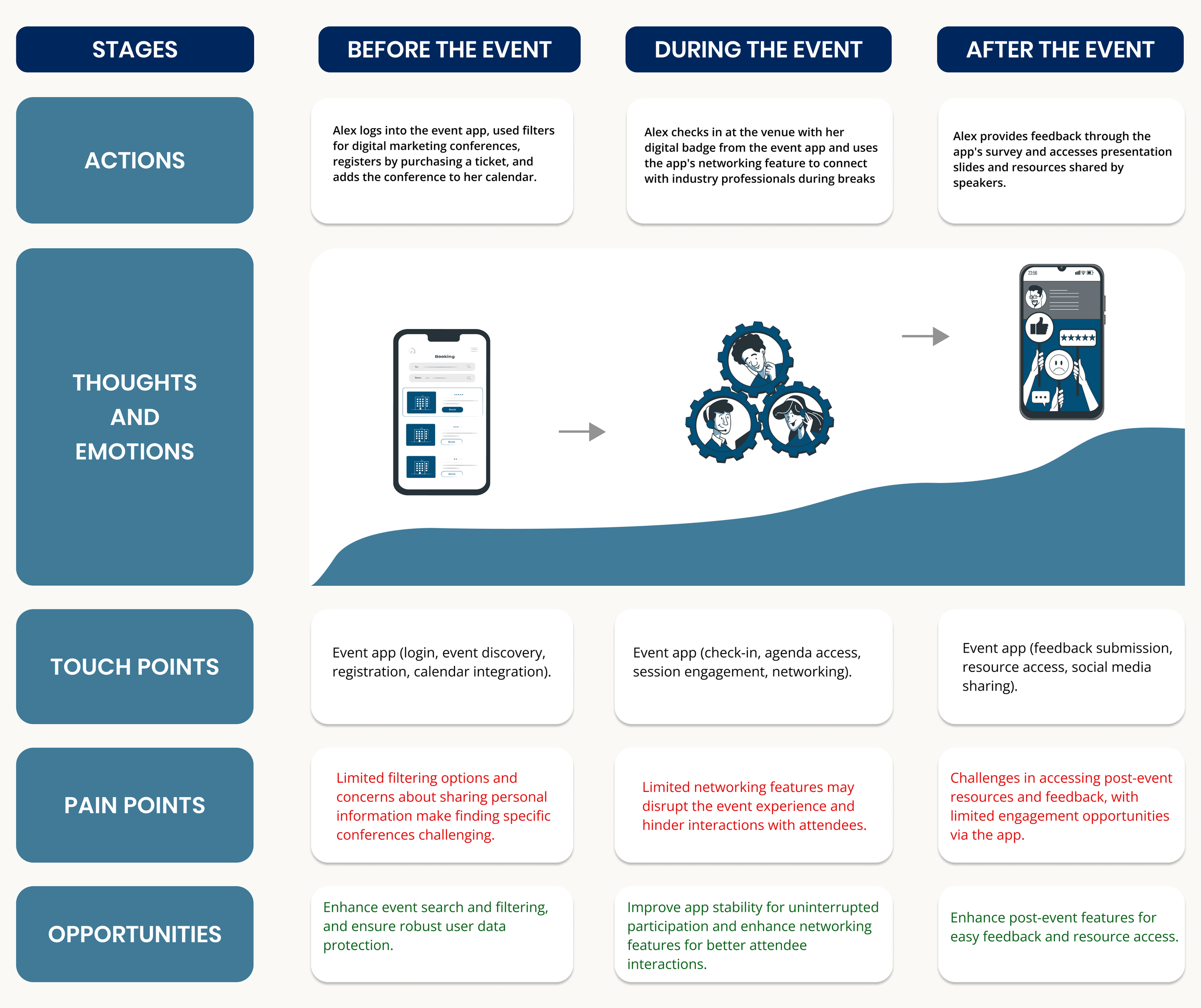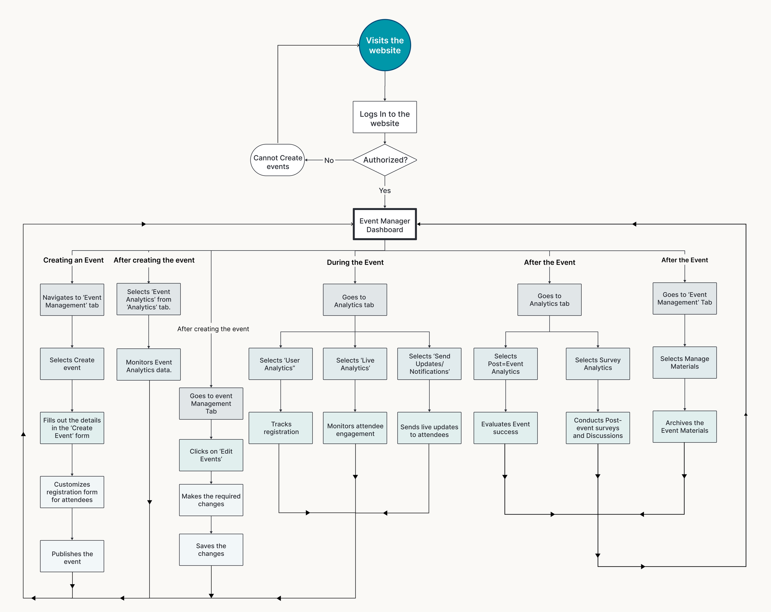 Starting with the research, I wanted to gain information from various articles and journals on filtering options, event organization, attendee management, admin dashboard management, event details page, etc.