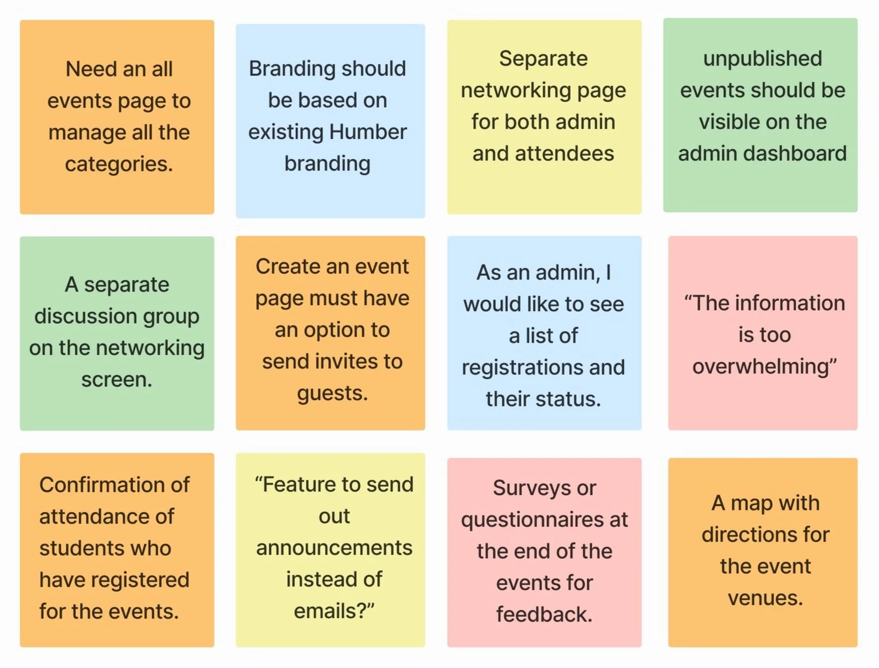 I conducted interviews with four internal stakeholders who were unaware of current events and struggled to easily locate several Humber-related activities. I’ve asked them the questions below to understand why they failed at some of the goals: